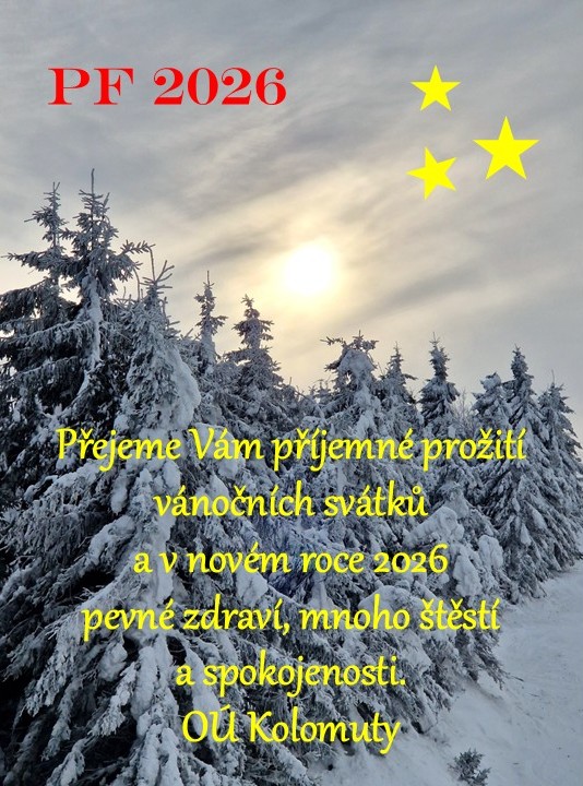 Přejeme Vám příjemné prožití vánočních svátků a v novém roce 2026 pevné zdraví, mnoho štěstí a spokojenosti. OÚ Kolomuty